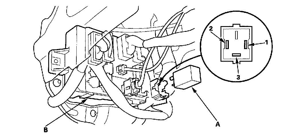 2. Remove the turn signal/hazard relay (A) from the driver's under-dash fuse/relay box (B).