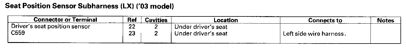 Seat Position Sensor Subharness (LX) ('03 Model):