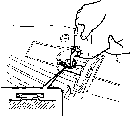 8. Pour Honda All Season Antifreeze/Coolant Type 2 into the radiator up to the base of the filter neck.