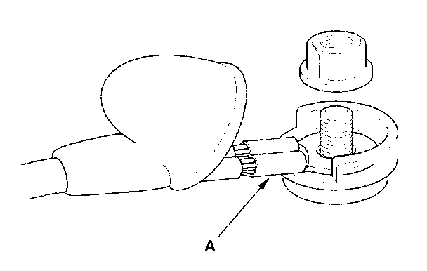 5. Install in the reverse order of removal. Make sure the crimped side of the ring terminal (A) is facing out.