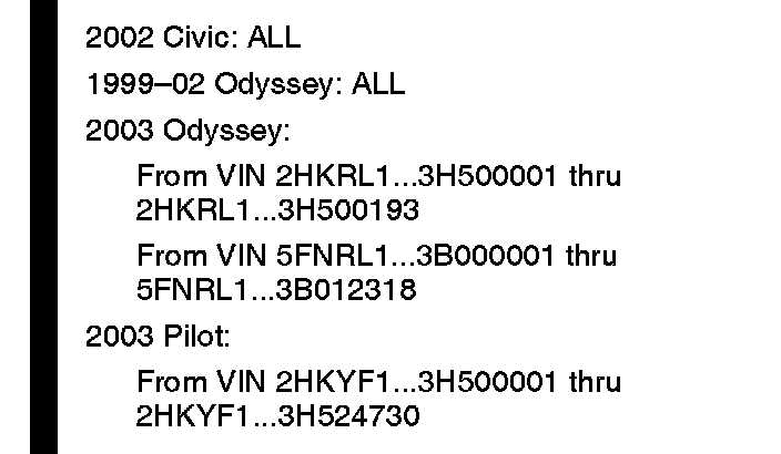 2002 Odyssey: From VIN 5FNRL1...2B000001 thru end of production
