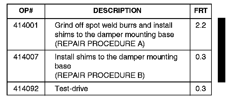 The exact location of spot weld burrs may vary. Be sure to check the damper mounting area completely.