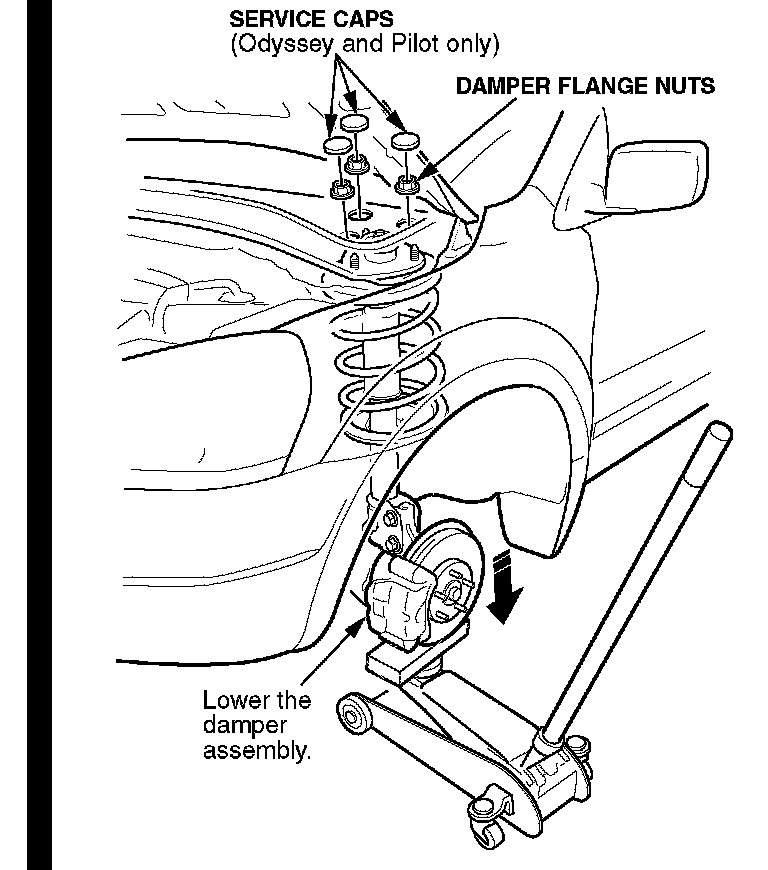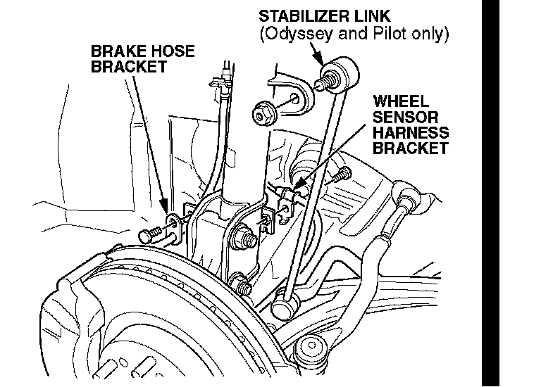 4. Odyssey and Pilot only: Remove the brake hose bracket from the damper. Do not disconnect the brake hose.