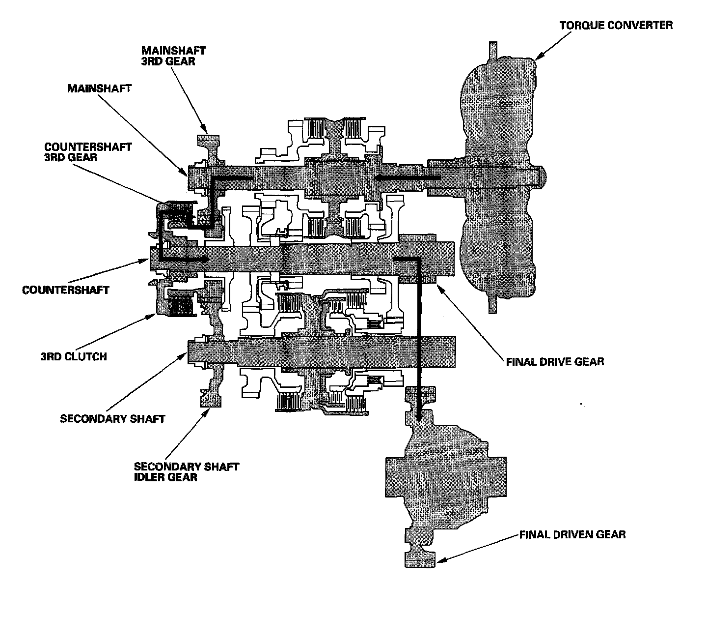 ^ Hydraulic pressure is applied to the 3rd clutch, then the 3rd clutch engages the countershaft 3rd gear with the countershaft.