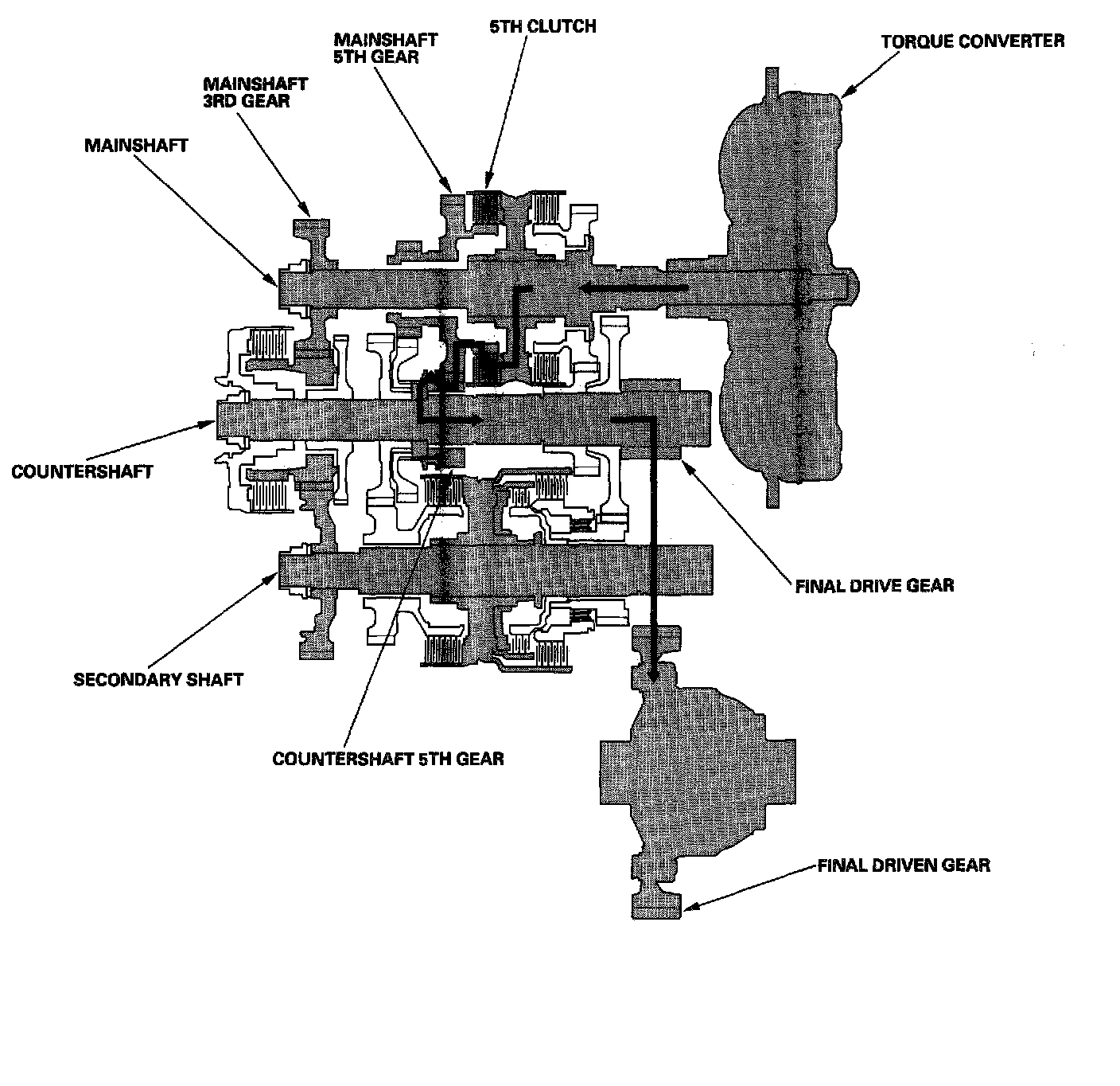 ^ Hydraulic pressure is also applied to the 5th clutch, then the 5th clutch engages the mainshaft 5th gear with the mainshaft.