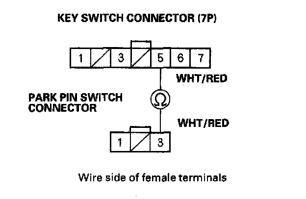 8. Check for continuity between the No. 3 terminal of the park pin switch connector and the No. 5 terminal of the key switch connector.