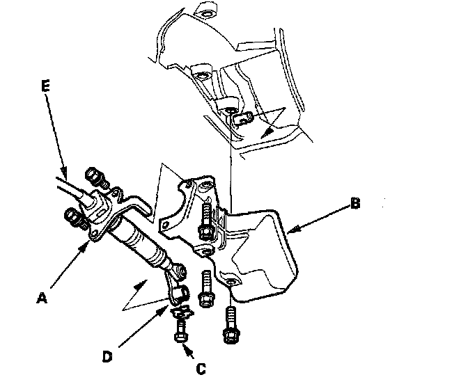 13. Install the lock bolt (D) with a new lock washer (E), then bend the lock washer tab against the bolt head.