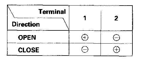 3. Check window motor operation by connecting power and ground according to the table. When the motor stops running, disconnect one lead immediately.