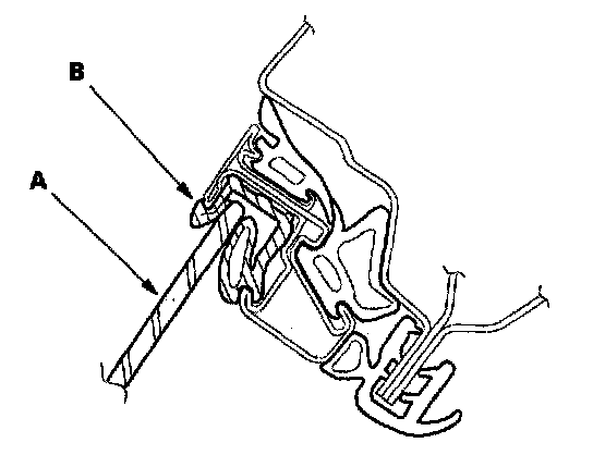 3. Carefully lower the glass (A) until you can see the glass mounting bolts (B), then loosen them.