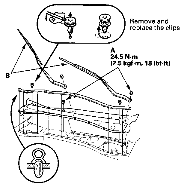 Windshield Wiper Motor Replacement1. Open the hood. Remove the nuts (A) and the windshield wiper arms (B).