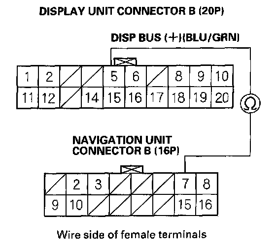 NO - There is an open in the circuit between the display unit and the navigation unit. Check for poor connections or loose terminals at the display and navigation units If a poor connection or loose terminal is found, replace the affected shielded harness.