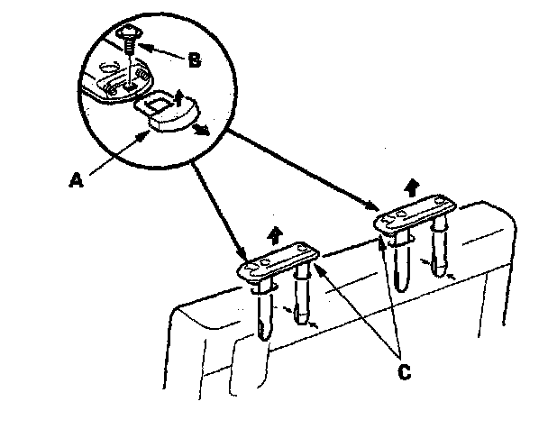 - Replace any clips (A) you removed with new ones using commercially available upholstery ring pliers (B).