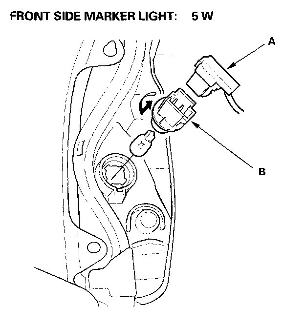 3. Turn the bulb socket (B) 45 ° counterclockwise to remove it from the headlight housing.