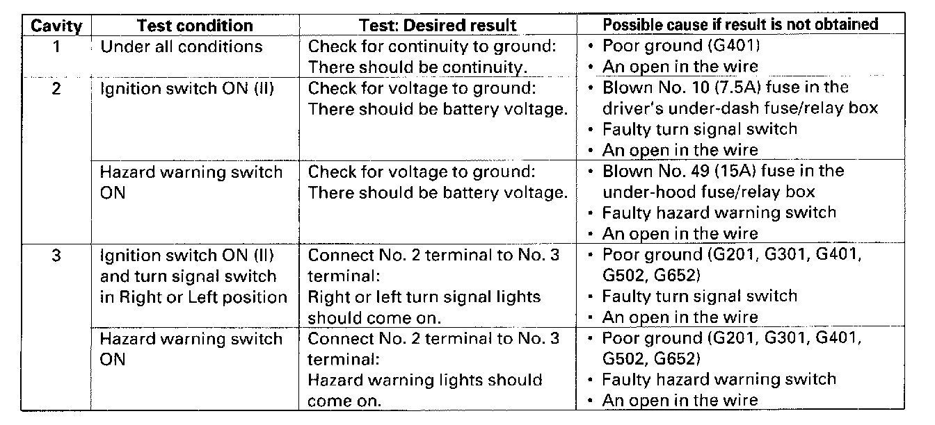 - If all the input tests prove OK, the turn signal/hazard relay must be faulty; replace it.