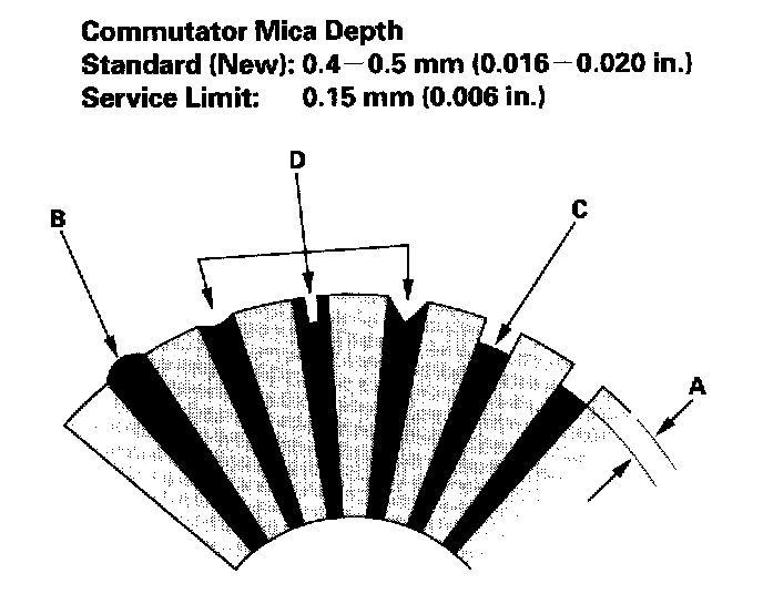 - If the commutator runout is within the service limit, check the commutator for carbon dust or brass chips between the segments.