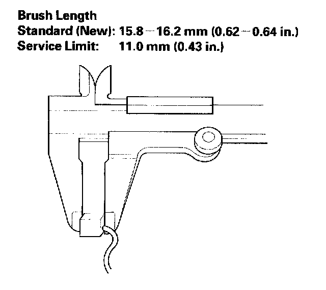 11. Measure the brush length. If it is not within the service limit, replace the brush holder assembly.