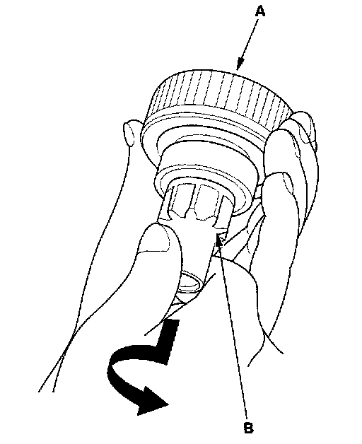 18. Rotate the overrunning clutch (A) both ways. If it does not lock in either direction or it locks in both directions, replace it.
