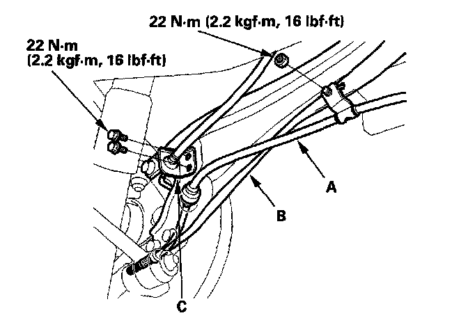 4. Remove the brake hose bracket (C) from the trailing arm.
