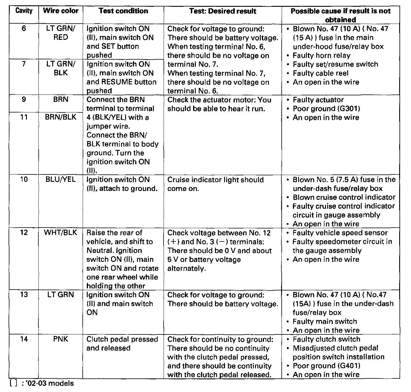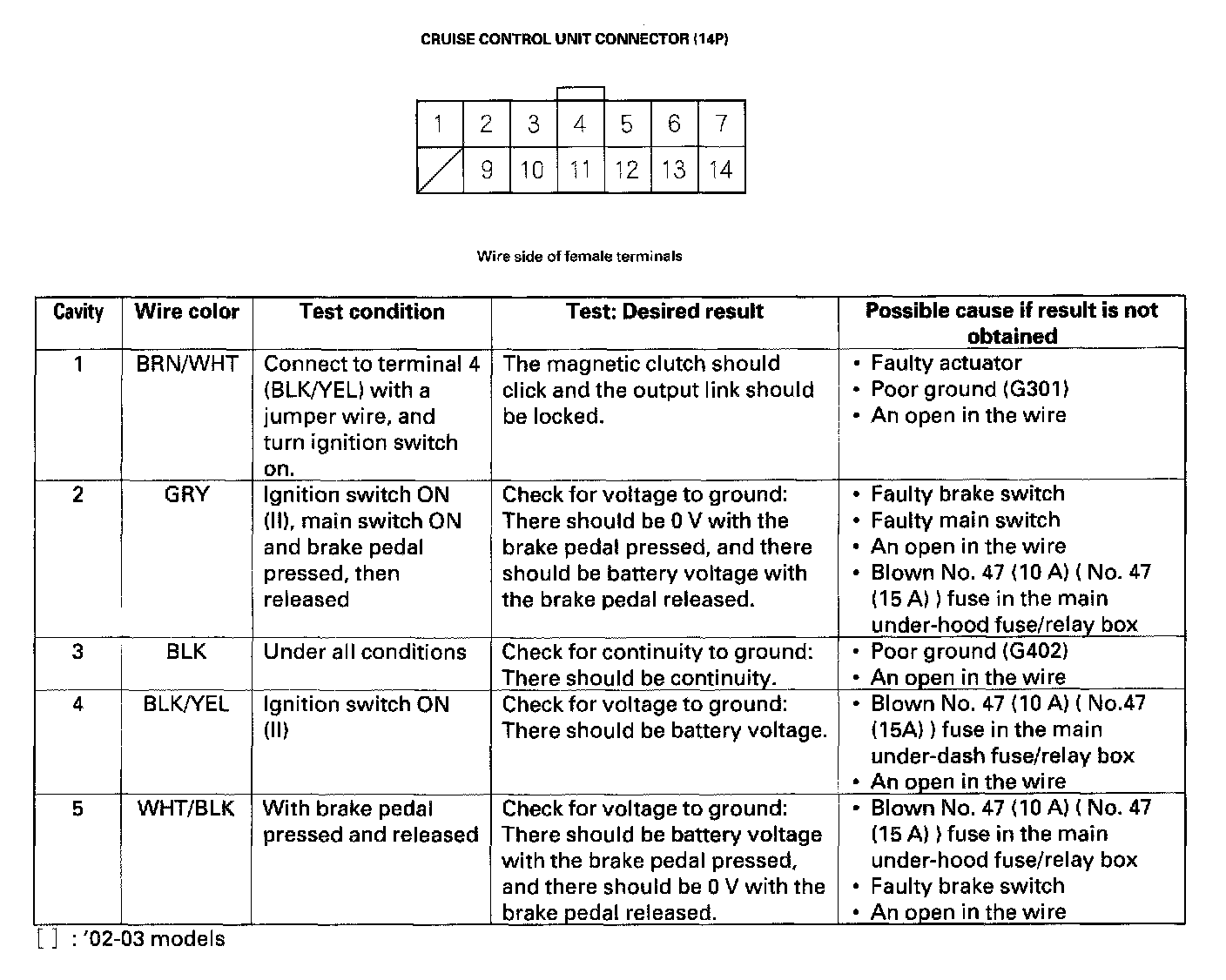 Cruise Control Unit Input TestSRS components are located in this area, review the SRS component locations, precautions, and procedures before performing repairs or service.