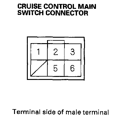 4. If a failure occurs between terminals No.6 and No.1, replace the cruise control main switch.