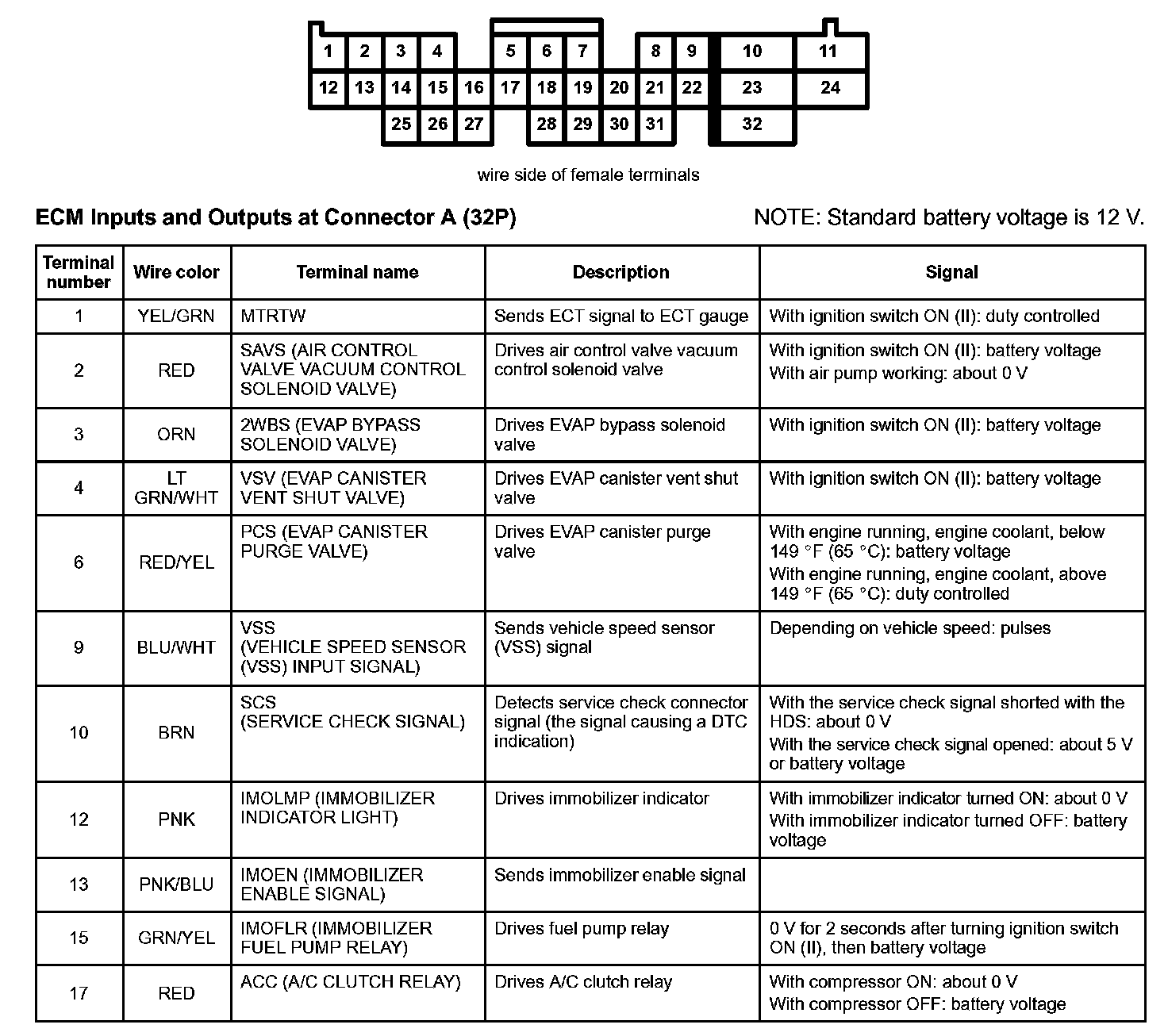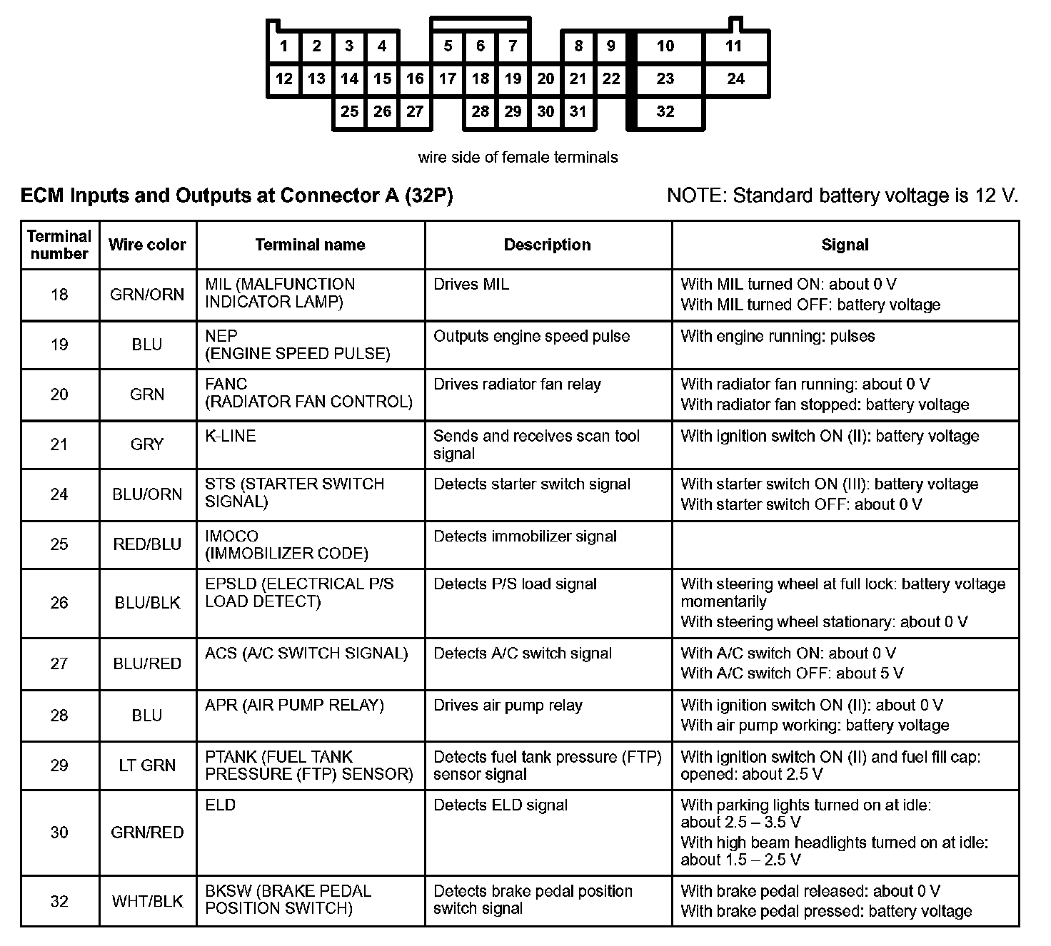 ECM Inputs And Outputs At Connector A (32P) Part 1: