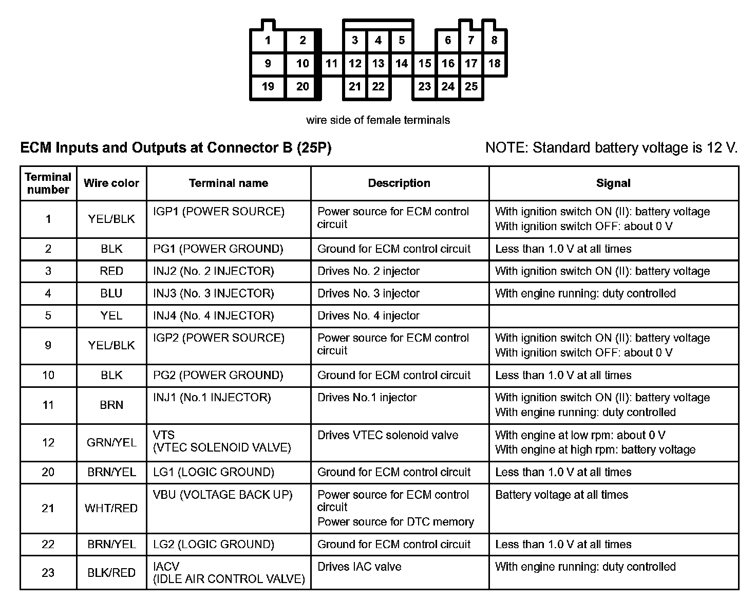ECM Inputs And Outputs At Connector B (25P):