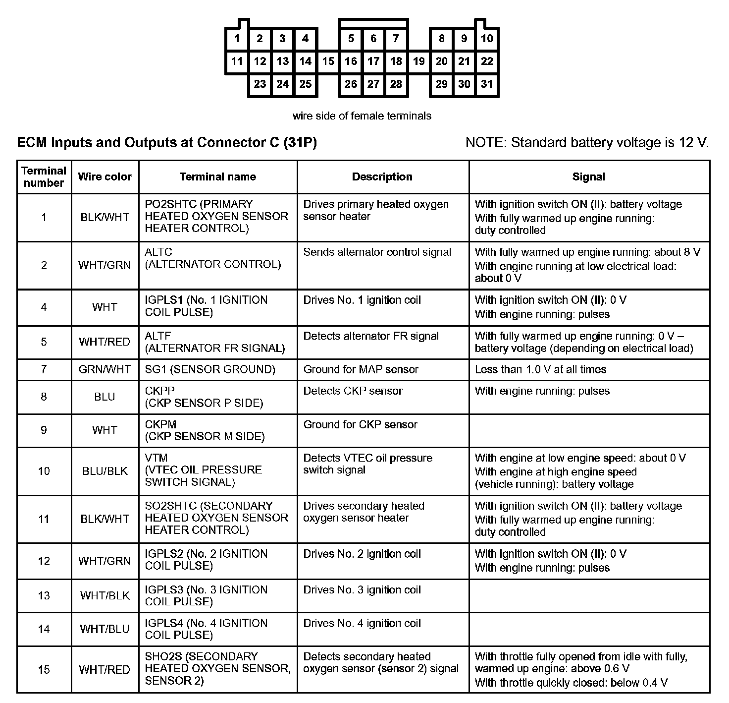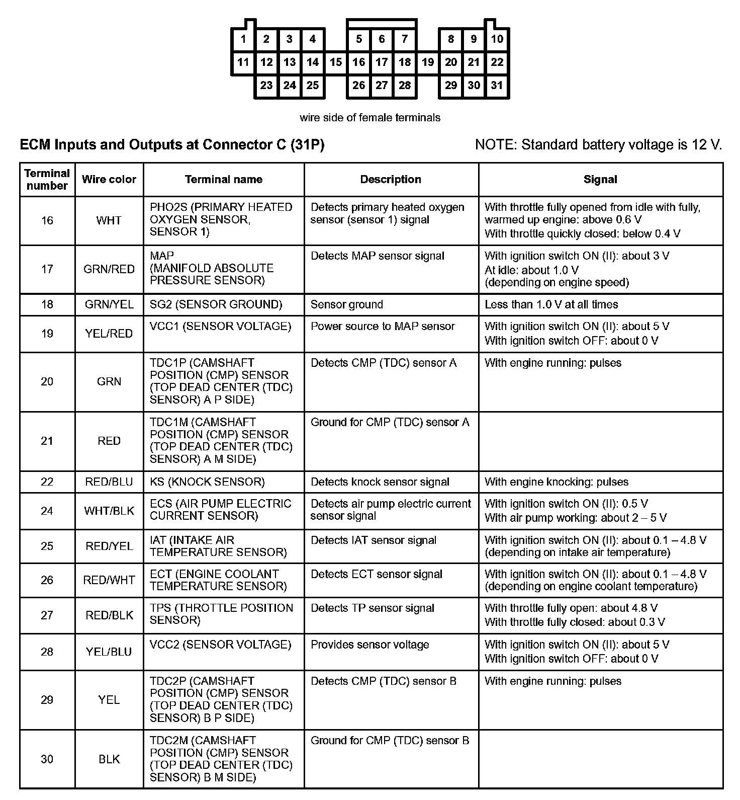 ECM Inputs And Outputs At Connector C (31P) Part 1: