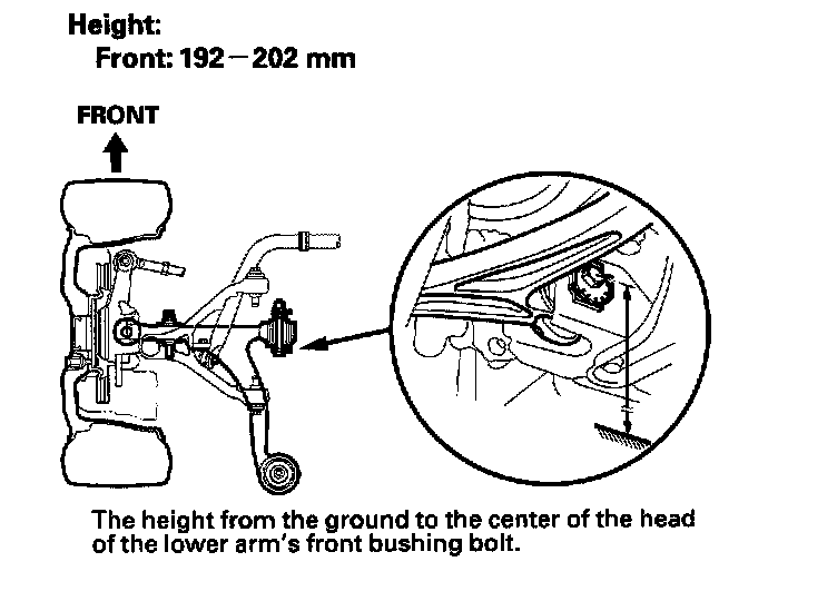 7. Check the height of each suspension. Make sure the vehicle is empty, is parked on a level surface, and has properly inflated tires (the tread wear indicator must not be showing). If the height is out of specification, adjust the load as necessary.