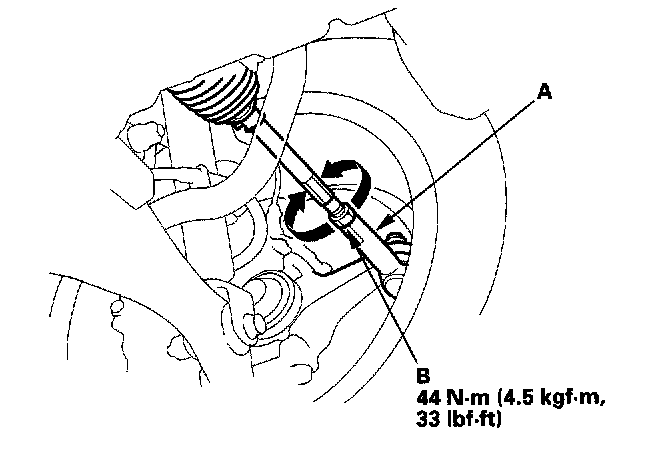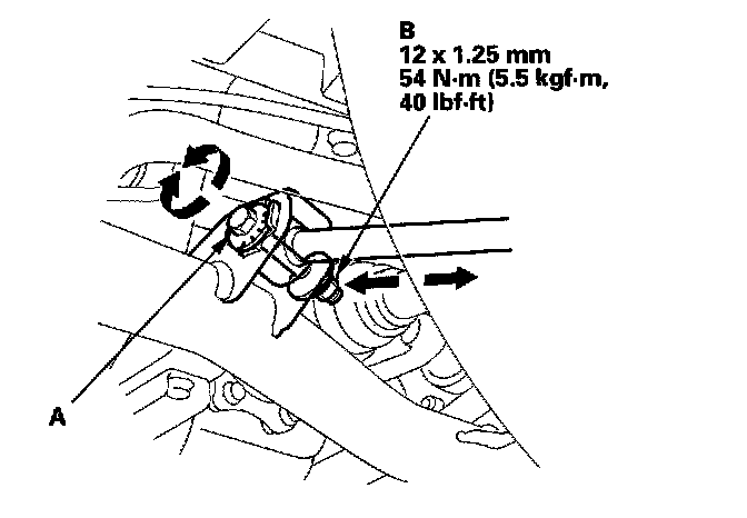 3. Hold the tie-rod end (A), and loosen the tie-rod locknut (B).