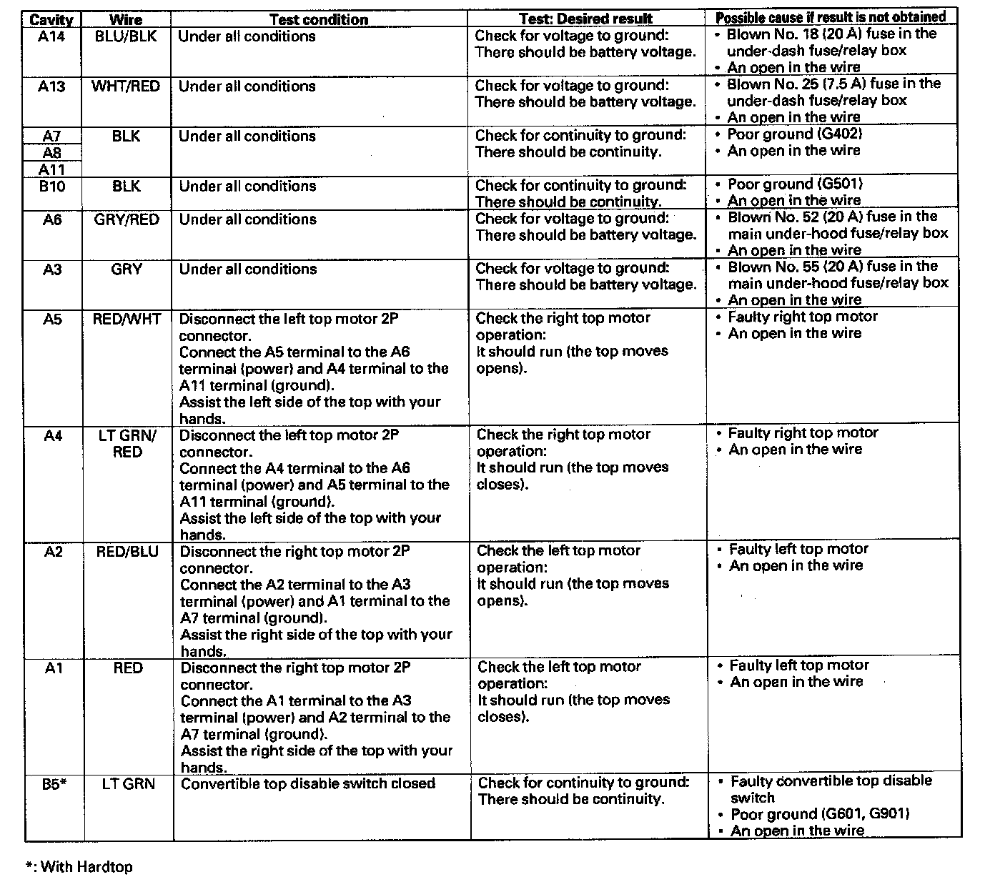 Convertible Top Control Module: Testing and Inspection