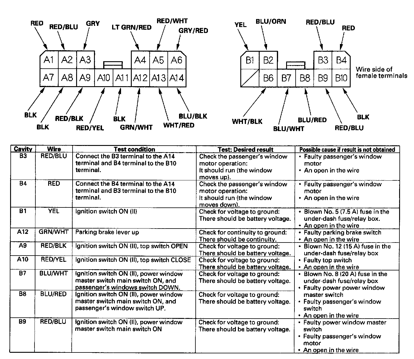 4. With the connectors still disconnected, make these input tests at the connectors.