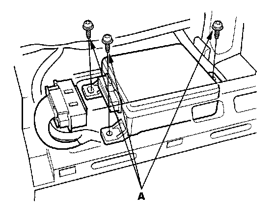 5. Remove the three Torx bolts (A) from the SRS unit, then pull out the SRS unit from the bracket.