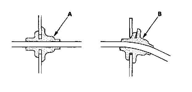 - Seat grommets in their grooves properly (A). Do not leave grommets distorted (B).