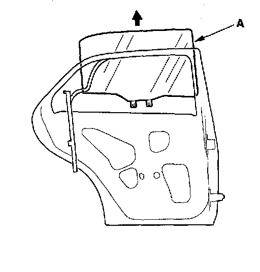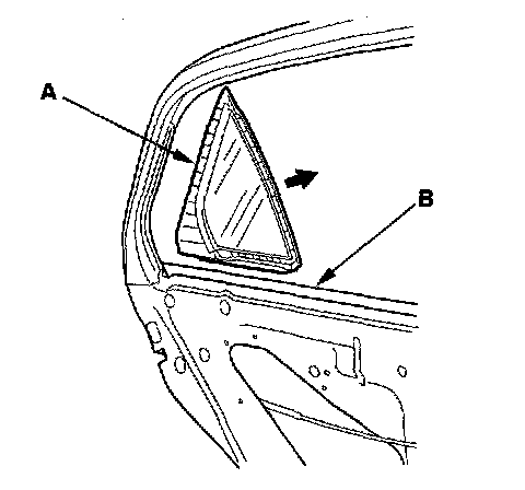 5. Remove the quarter glass (A). Take care not to damage the outer weatherstrip (B).