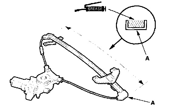 9. Apply multipurpose grease to all the sliding surfaces of the regulator (A) where shown.