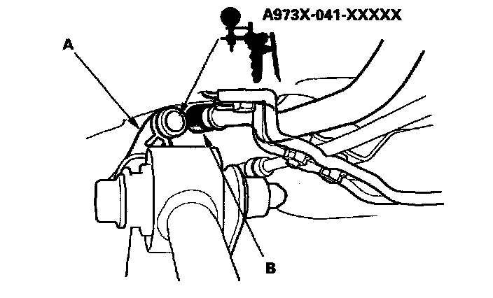 9. Fill the fuel tank with fuel, then check for fuel in the EVAP two way valve (A), and fuel tank vapor recirculation hose (B).
