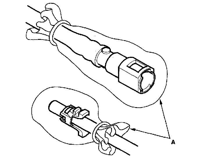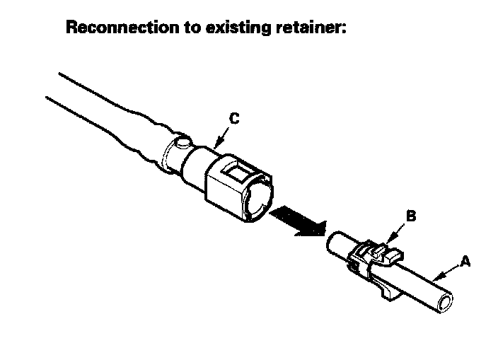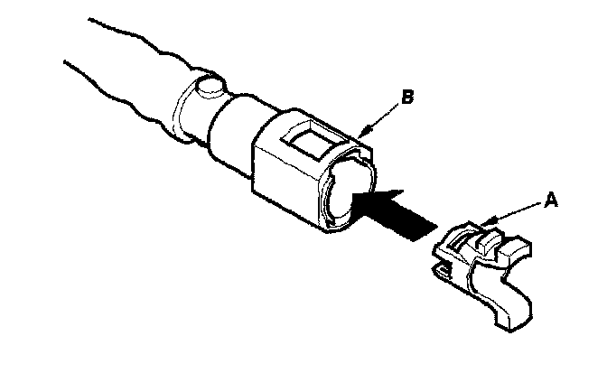 2. Insert a new retainer (A) into the connector (B) if the retainer is damaged, or after: