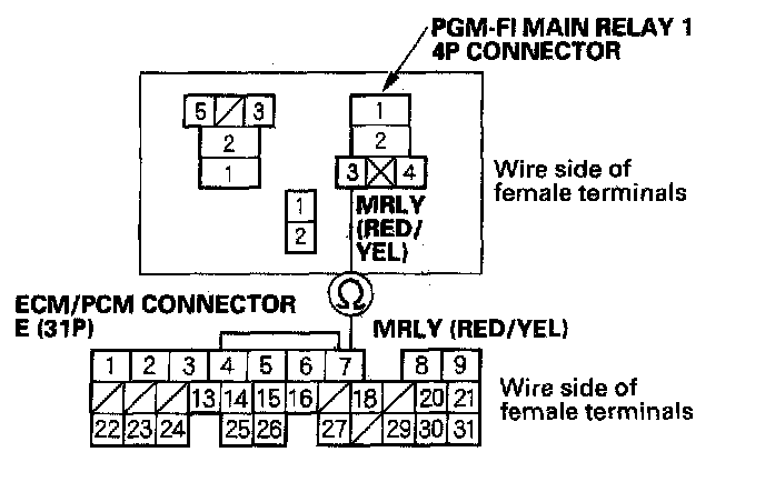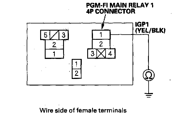 21. Check for continuity between PGM-FI main relay 1 4P connector terminal No.1 and body ground.