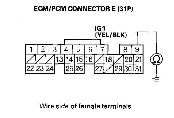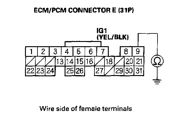 25. Check for continuity between ECM/PCM connector terminal E9 and body ground.