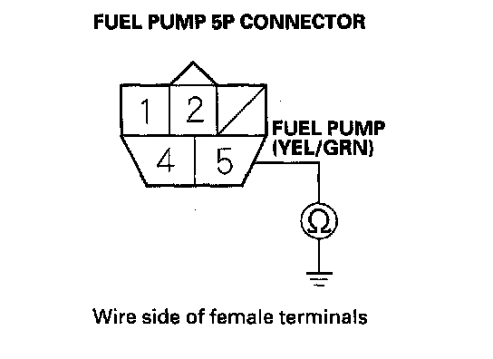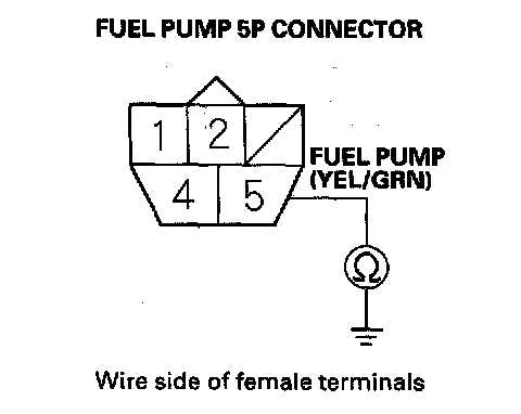 35. Check for continuity between fuel pump 5P connector terminal No.5 and body ground.