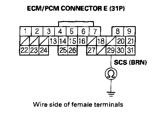 29. Check for continuity between ECM/PCM connector terminal E9 and body ground.