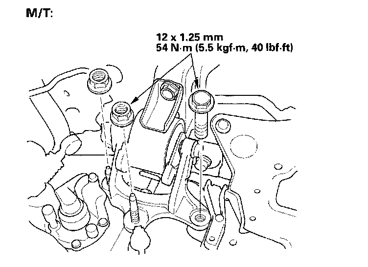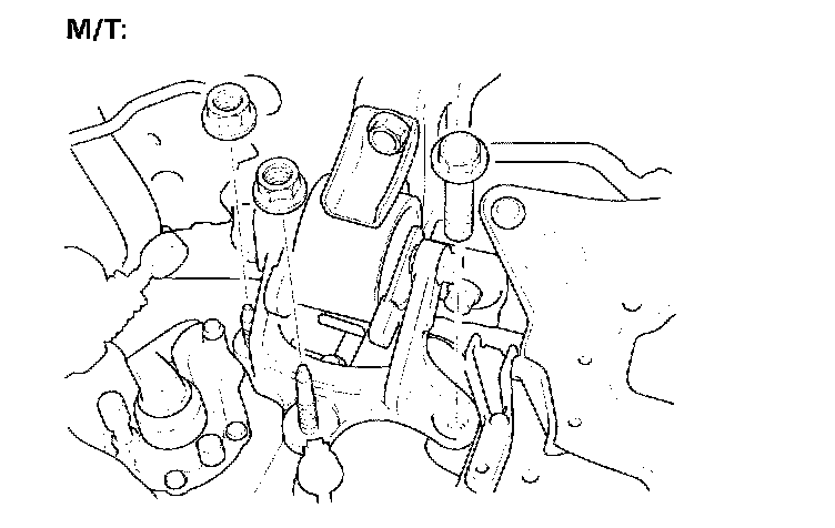 12. Tighten the transmission mount bracket support bolt and nuts.
