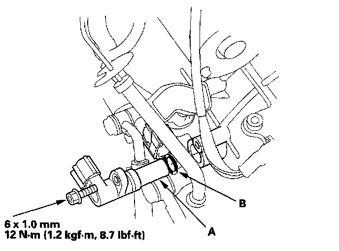 3. Install the new CVT drive pulley speed sensor with the new C-ring (B).