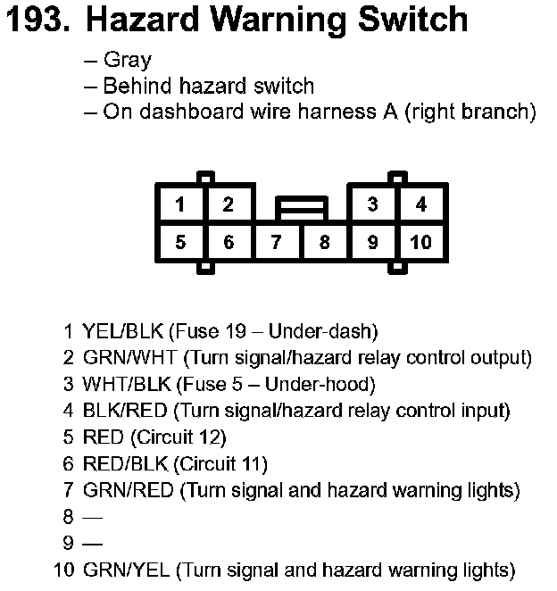 193. Hazard Warning Switch: