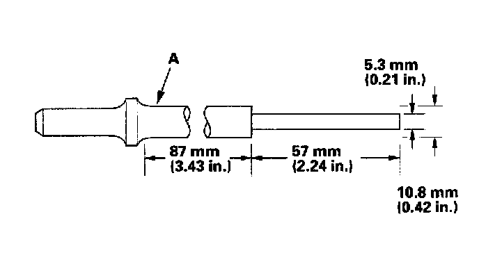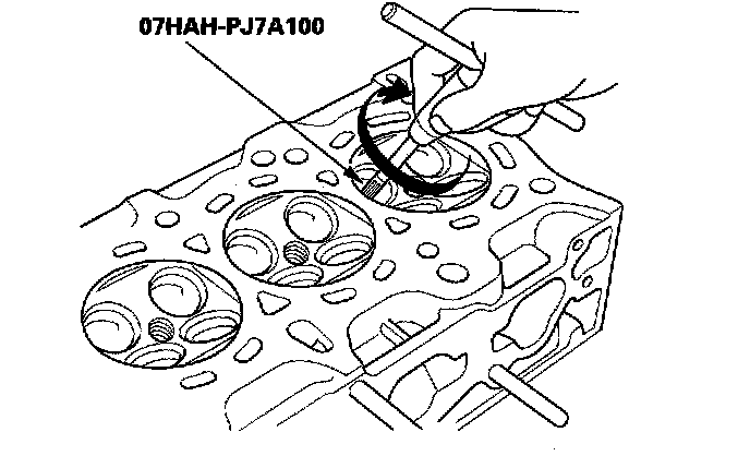 1. As illustrated below, use a commercially available air-impact valve guide driver (A) modified to fit the diameter of the valve guides. In most cases, the same procedure can be done using the special tool and a conventional hammer.