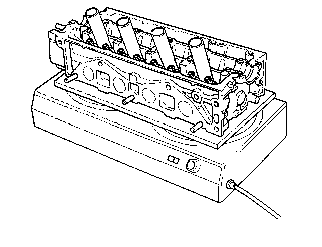 3. Use a hot plate or oven to evenly heat the cylinder head to 300°F (150°C). Monitor the temperature with a cooking thermometer. Do not get the head hotter than 300°F (150°C); excessive heat may loosen the valve seats.