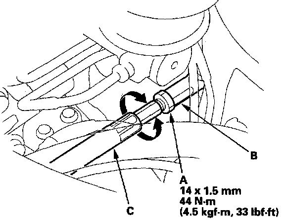 4. Turn the tie-rod end (C) until the toe is correct.