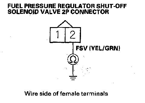 31. Check for continuity between fuel pressure regulator shut-off solenoid valve 2P connector terminal No.2 and body ground.