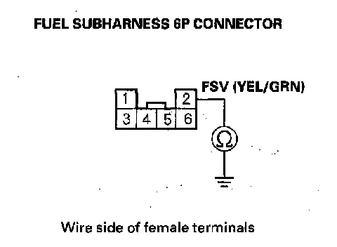 32. Check for continuity between fuel subharness 6P connector terminal No.2 and body ground.