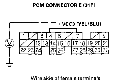 79. Measure voltage between PCM connector terminal E29 and body ground.